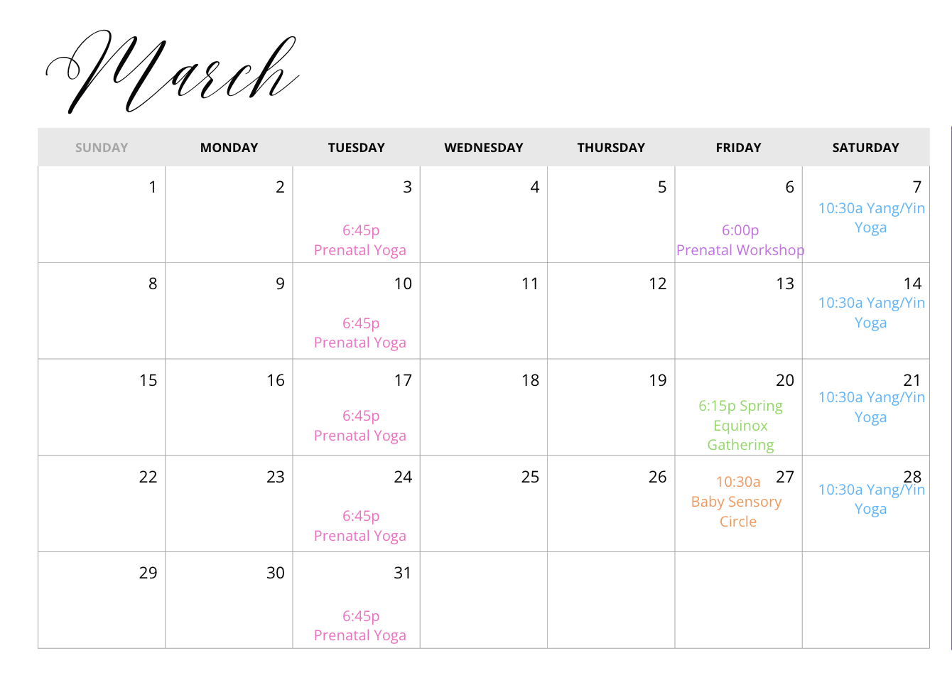 New prenatal yoga series - April/May & June/July